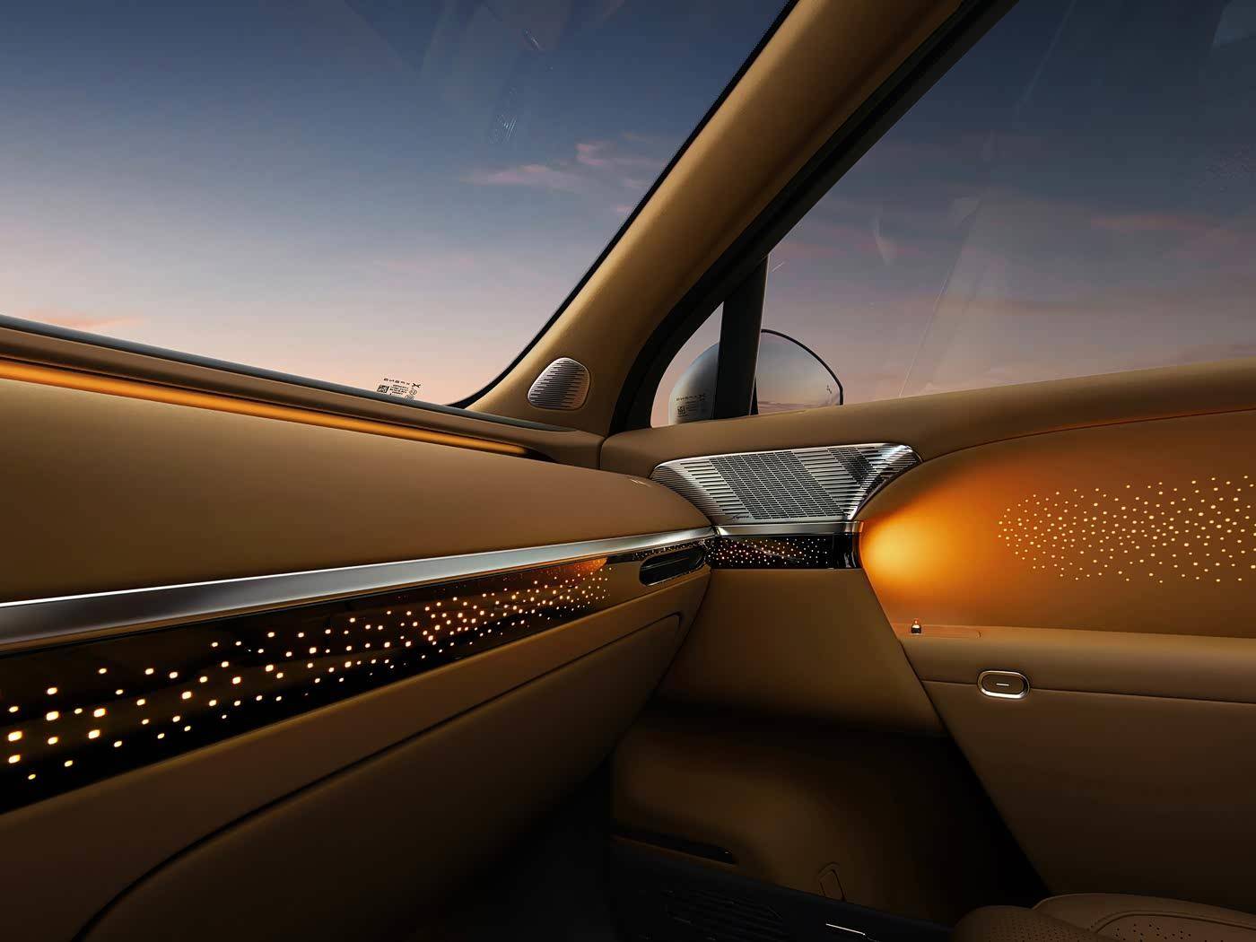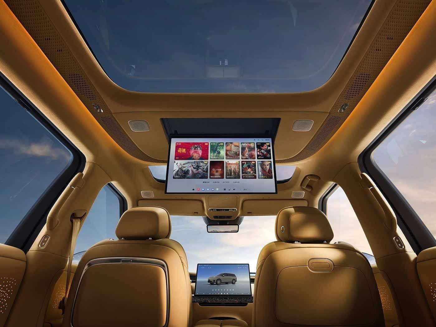 配色方面,图片中偏居家的棕色,看上去非常温馨,而且细节之处还有镀铬元素进行点缀,精致感同样不俗。配置上新车还有33枚聆境AI音响Max,拥有7.1.6.8沉浸式全景声,其中有8个头枕扬声器,相信这也是新车的一大卖点。