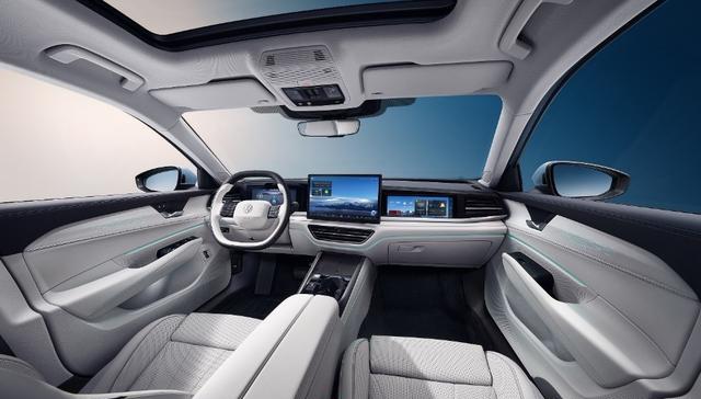 在设计方面,帕萨特 ePro与途观L ePro采用“以简驭繁,以现代美学重塑经典”的设计哲学,整体呈现更强电气化气质与未来感。其中,帕萨特 ePro,立足“中高级混动轿车新旗舰”定位,前脸采用全新电气化数字设计,配备贯穿式LED灯带与发光LOGO,车侧姿态优雅、车尾横向宽阔动感,整体格调大气纯粹。全新电感氛围座舱采用横向贯穿一体式设计,搭配全新两辐式方向盘,配合长5,017mm、宽1,850mm、高1,489mm的车身尺寸与2,871mm超长轴距,带来越级宽敞乘坐空间,头、腿部舒展无压迫。CLTC综合续航高达1,468km,长途出行无焦虑。