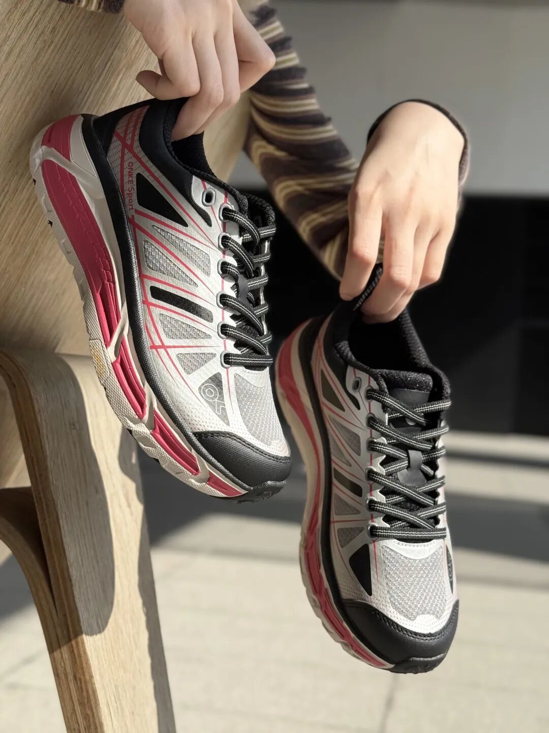 onke跑鞋在研发上就耗费了不少功夫,模拟人体走路运动步伐,穿上运动更流畅,减少膝盖、足弓的冲击